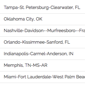 3 | Nashville-Davidson--Murfreesboro--Franklin, TN | $12.1 | |||